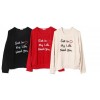 秋裝新品日系寬松圓領慵懶字母長袖套頭蝙蝠袖T恤款針織衫女
